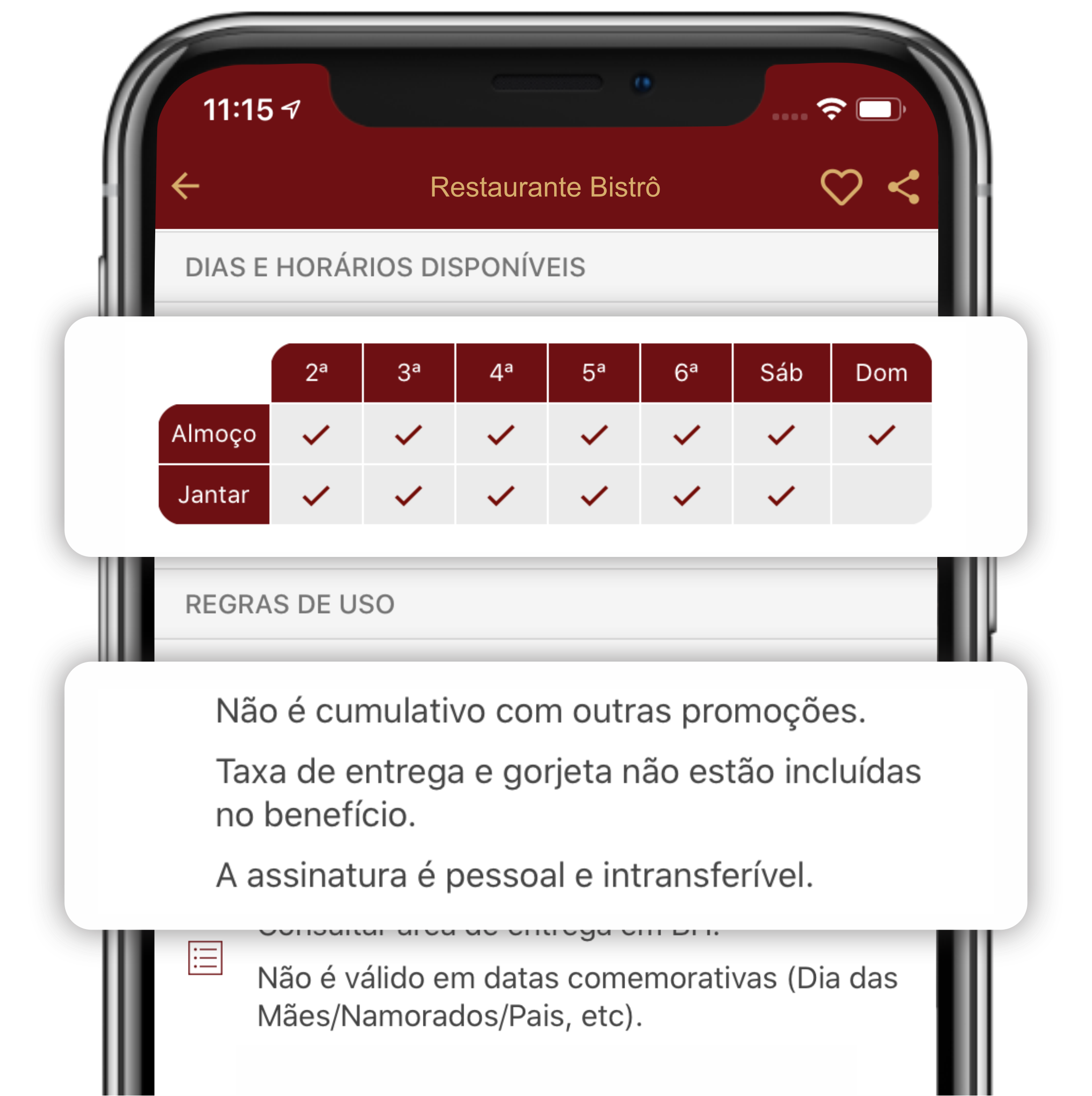 Não possui limite de uso, com desconto em milhares de restaurantes e experiências, disponível em todas as regiões do país e também nos EUA.